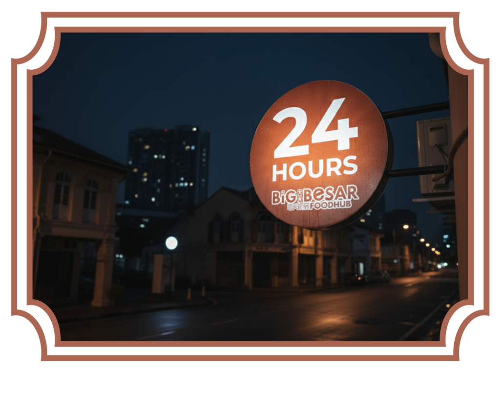 Big Besar Food Hub is a 24-hour food hub located in Jalan Besar, Singapore, offering a casual and comfortable dining space at any hour of the day. The name Big Besar reflects our identity  “大 (Dà)” means big in Chinese, and “Besar” means big in Malay representing big ideas, big variety, and big options brought together in one shared space. With multiple vendors offering different local favourites, we work closely with selected partners to operate 24 hours, so whether you’re stopping by after a late night out, winding down nearby, or looking for a meal in the early hours, there’s always good food waiting.